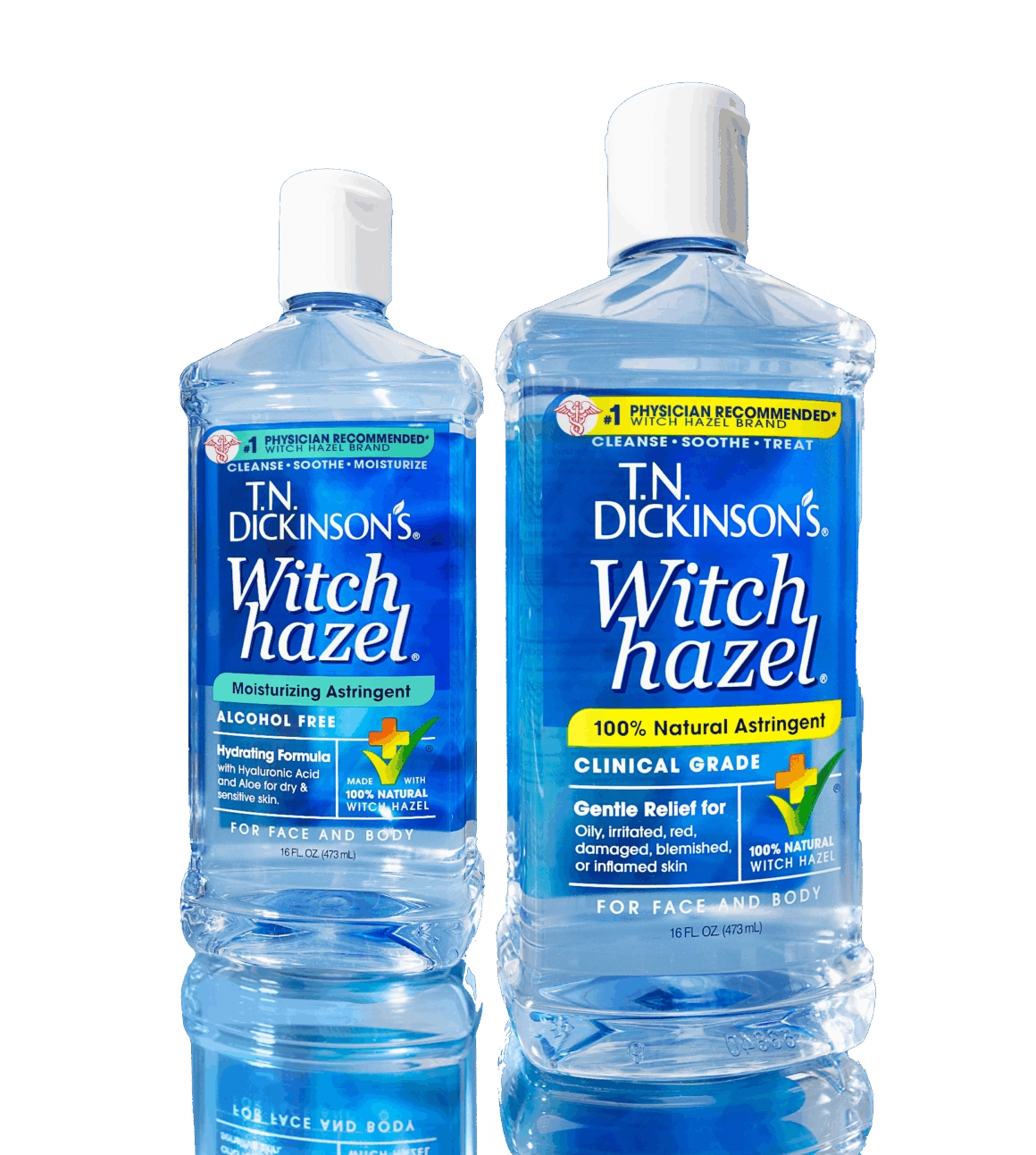 T.N. Dickinson’s Witch Hazel is distilled in accordance with the USP* standard for witch hazel, to extract the most potent parts of the bark and twigs of mature witch hazel plants, and to deliver the purest product.